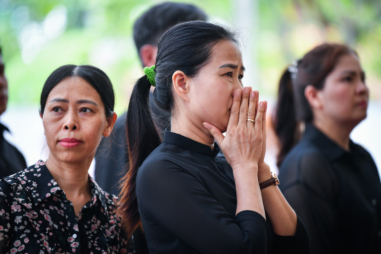 | Người dân nghẹn ngào khi vào viếng Tổng Bí thư. |