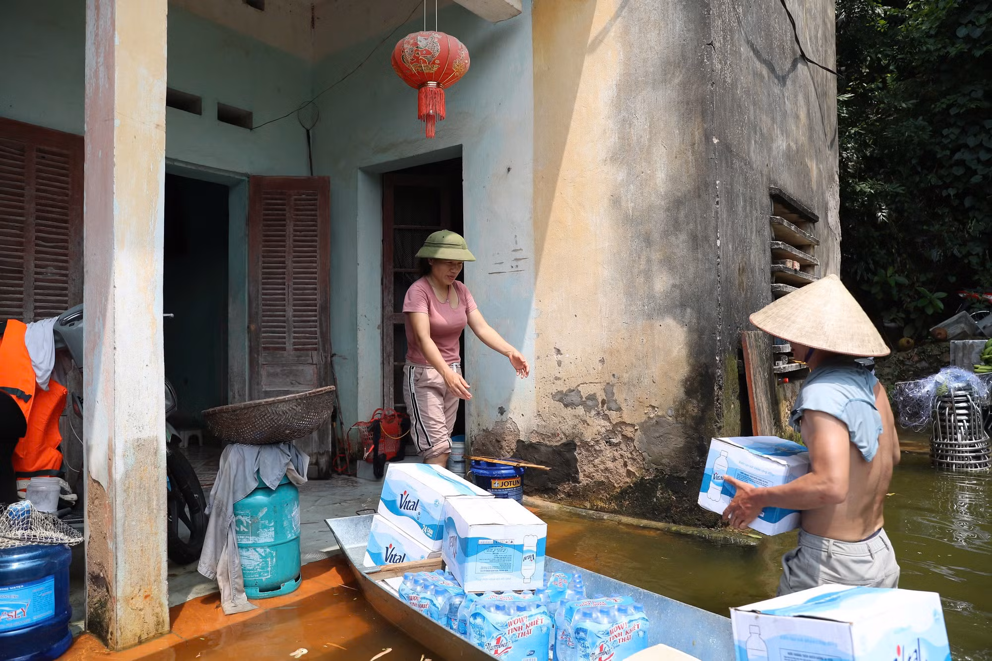 | Nước ngập sâu khiến nhiều nhà dân phải di dời trước đó. |