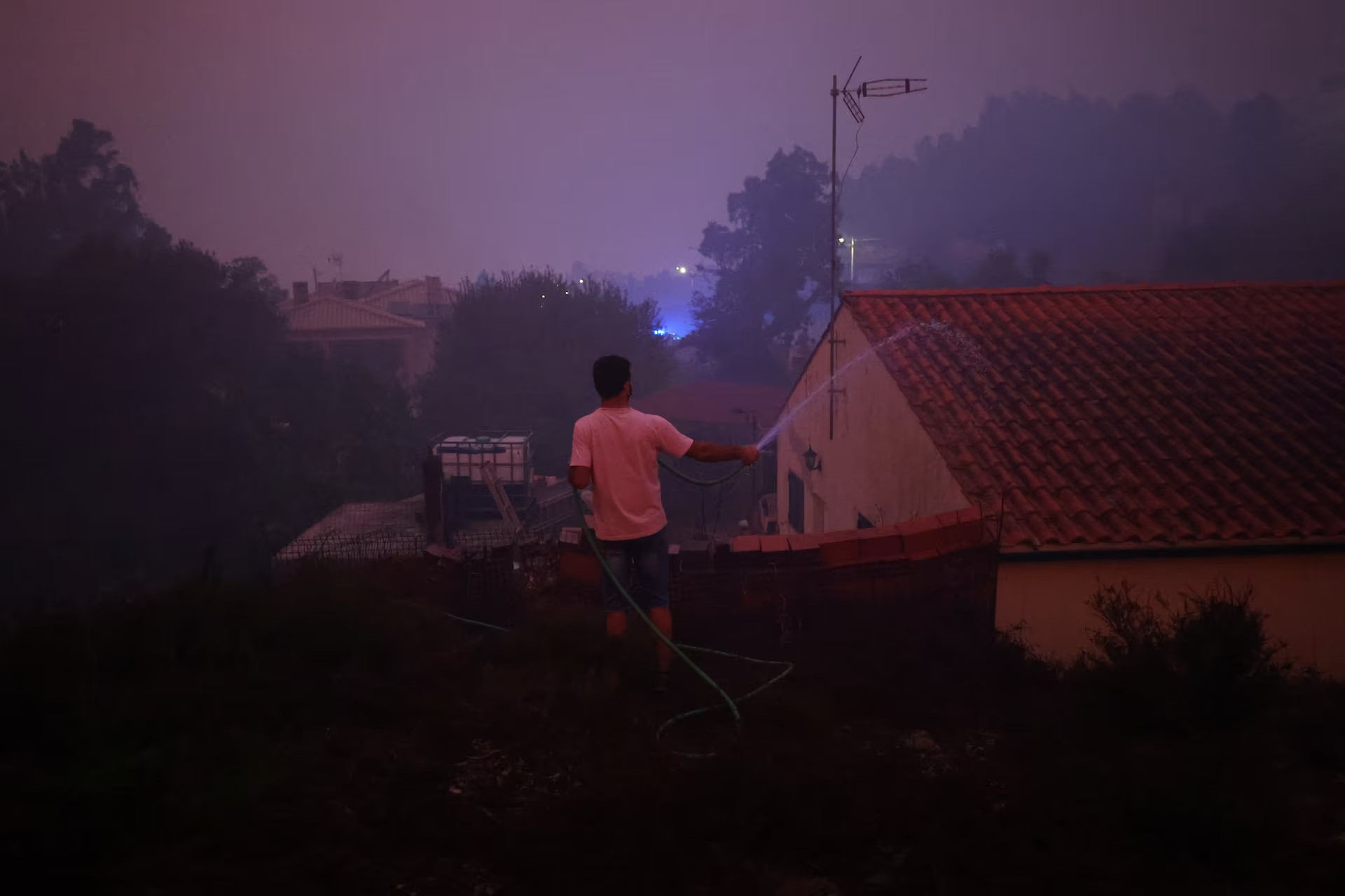 Mọi người rời khỏi nhà khi đám cháy rừng đang tiến gần đến Veiga, Agueda, Bồ Đào Nha ngày 17/9.