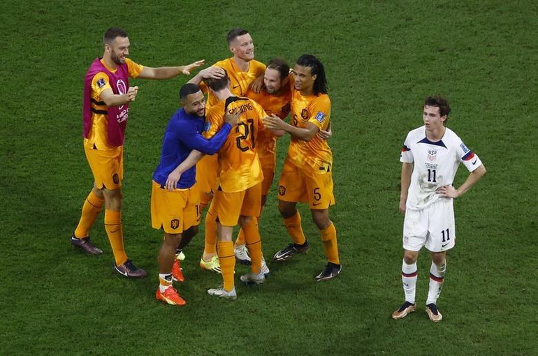 Dưới đây là một số hình ảnh ấn tượng trong 2 trận đấu đầu tiên của vòng 1/8: Hà Lan - Mỹ và Argentina - Australia.