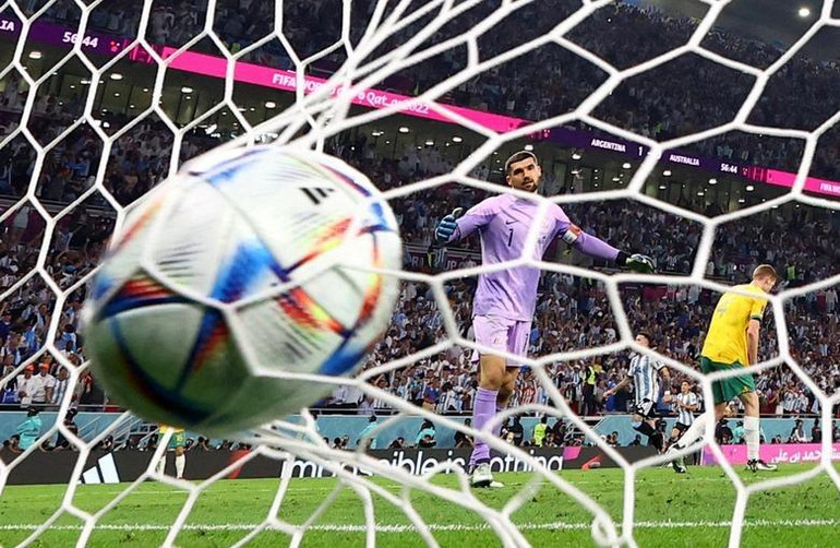 Phản ứng của thủ thành tuyển Australia sau khi Julian Alvarez nhân đôi cách biệt cho Argentina.