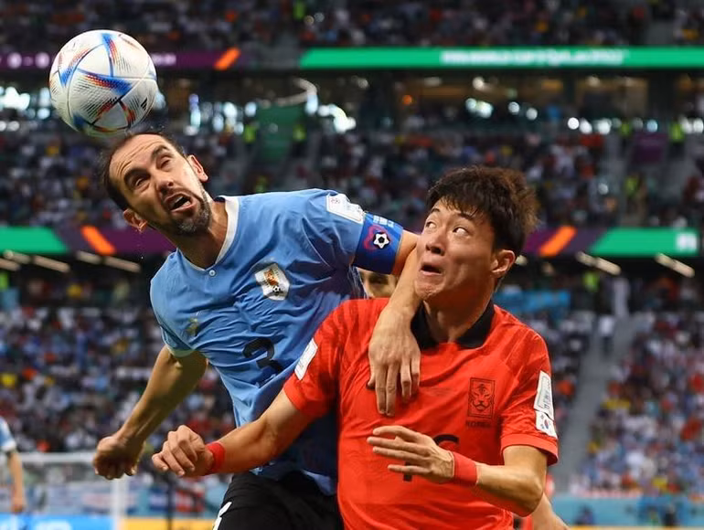 Pha tranh bóng giữa Diego Godi (Uruguay) và Hwang Ui-jo (Hàn Quốc).