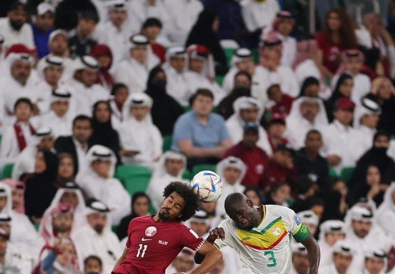Tình huống tranh chấp bóng giữa Akram Afif (Qatar) và Kalidou Koulibaly (Senegal).
