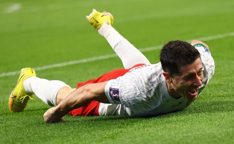 Tiền đạo Robert Lewandowski (Ba Lan) ăn mừng bàn thắng vào lưới Saudi Arabia.