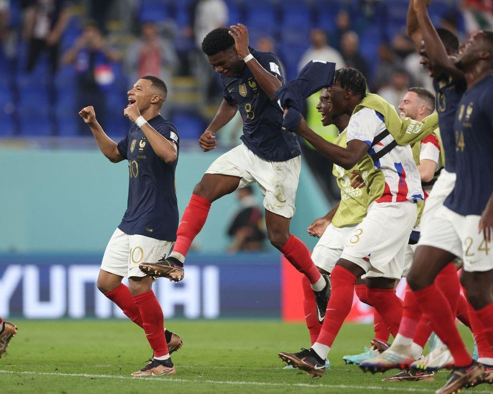 Tiền đạo Kylian Mbappe tỏa sáng với cú đúp vào lưới Đan Mạch, giúp Pháp giành vé sớm vào vòng 1/8 World Cup 2022. (Ảnh: Reuters)