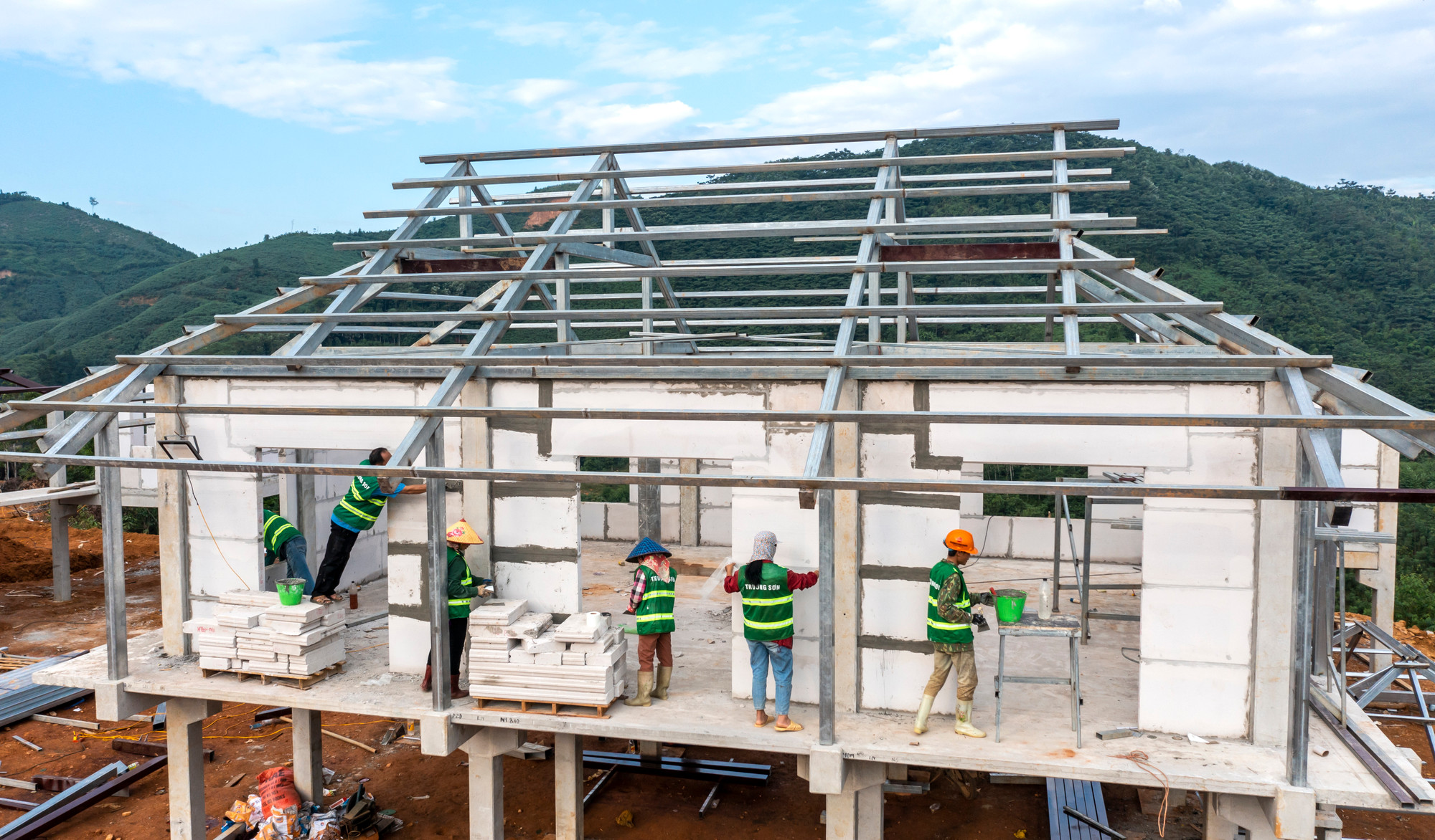 | Nhìn những căn nhà mới dần hình thành, tất cả đều thêm quyết tâm, thêm sức mạnh để làm việc. |