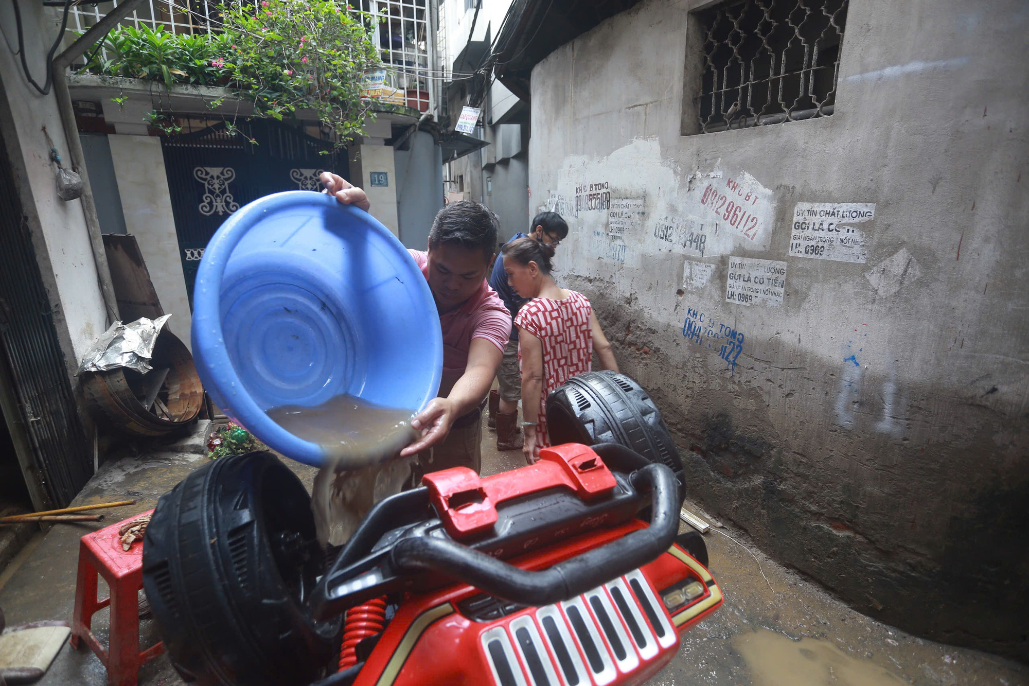 | Sáng 13/9, lũ sông Hồng rút, đường phố và trong nhà người dân ngập tràn bùn đất và rác thải. Người dân tại phường Phúc Tân, quận Hoàn Kiếm bắt đầu về nhà dọn dẹp. |
