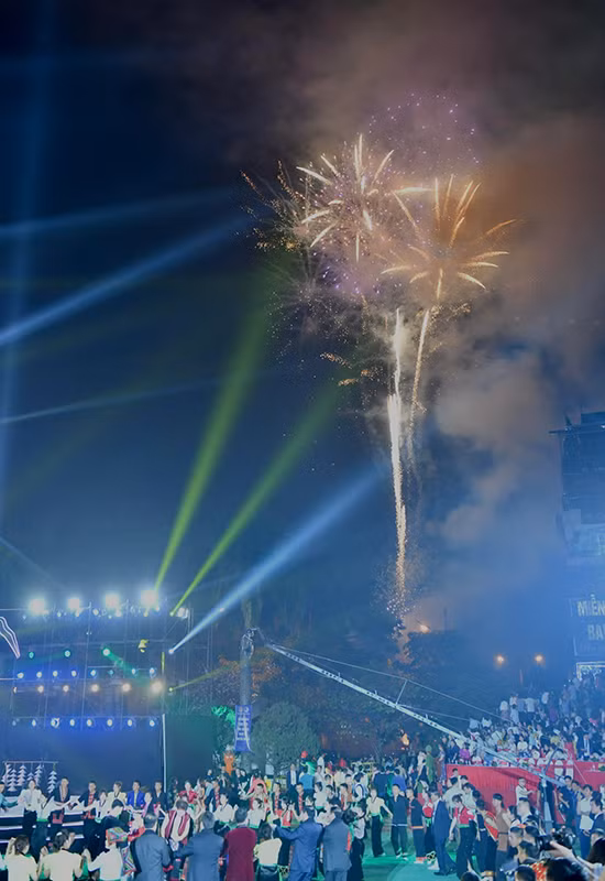 | Màn bắn pháo hoa tầm thấp phục vụ nhân dân và du khách tại Lễ khai mạc Năm Du lịch quốc gia Điện Biên và Lễ hội Hoa ban năm 2024. |