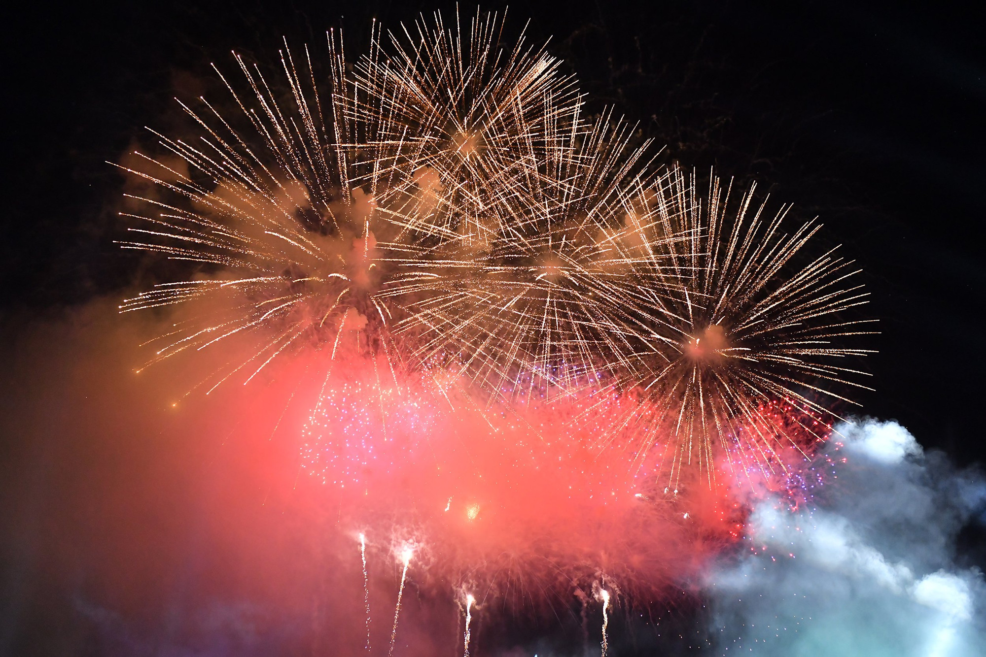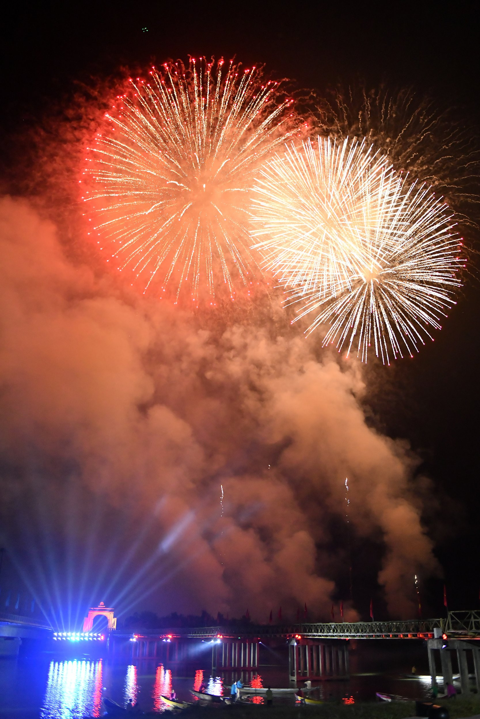 | Pháo hoa rực sáng bầu trời trên dòng sông lịch sử. |