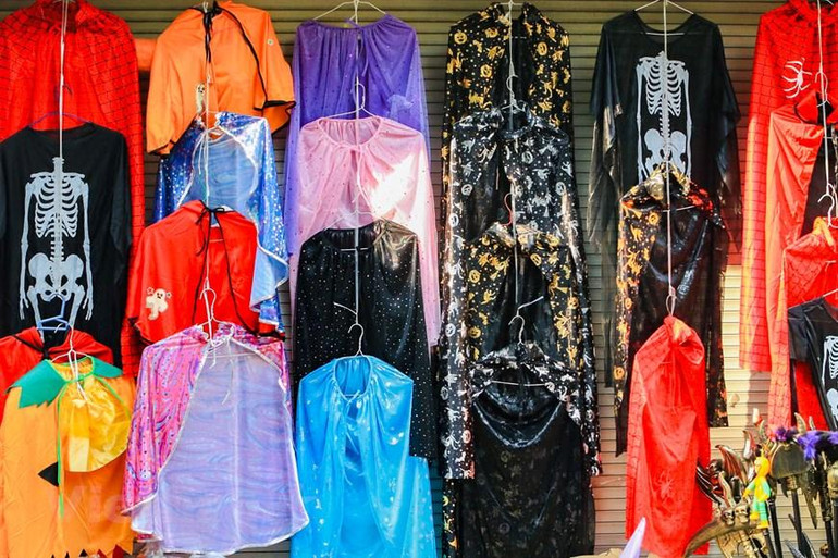 Các trang phục hóa trang kinh dị cũng được bày bán đa dạng như áo choàng phù thủy, áo thần chết, người nhện,…