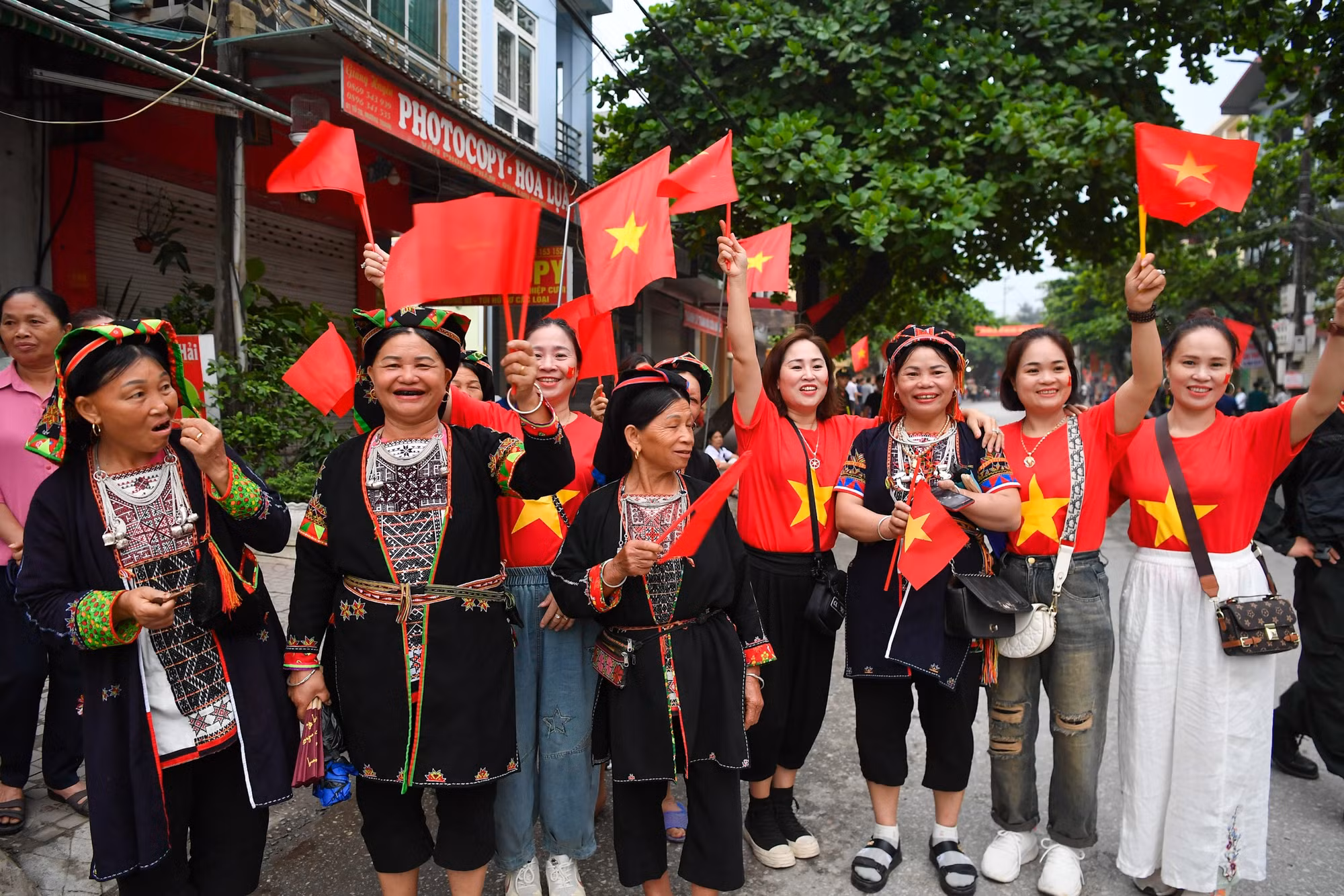 | Niềm vui rạng ngời trên gương mặt người dân tại Điện Biên. |