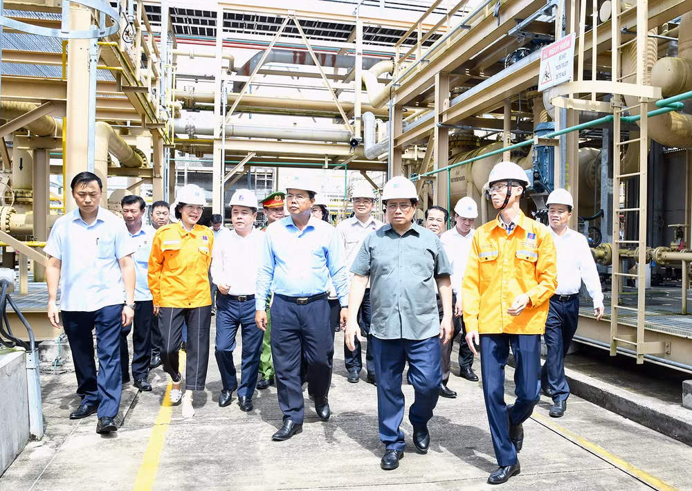 | Thủ tướng Phạm Minh Chính thăm Nhà máy Xử lý khí Cà Mau nằm trong Cụm Khí - Điện - Đạm Cà Mau. |