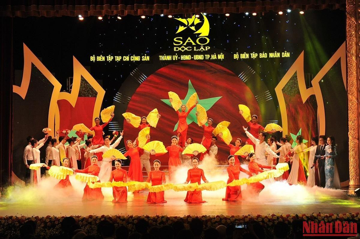 | Chương trình nghệ thuật “Sao Độc lập” khép lại với những âm thanh tràn đầy niềm tự hào dân tộc, niềm tin về một quốc gia phát triển hùng cường của ca khúc “Vì tôi là người Việt Nam”. (Ảnh: THÀNH ĐẠT) |