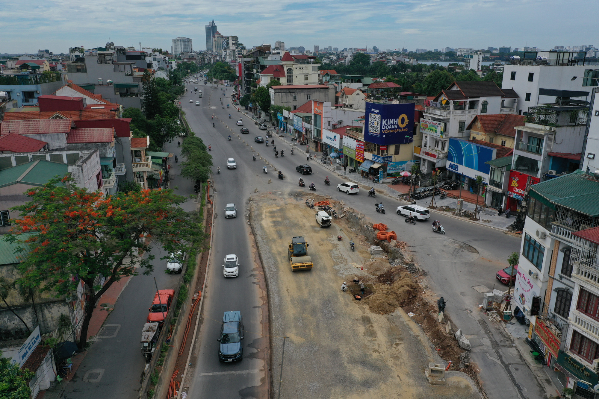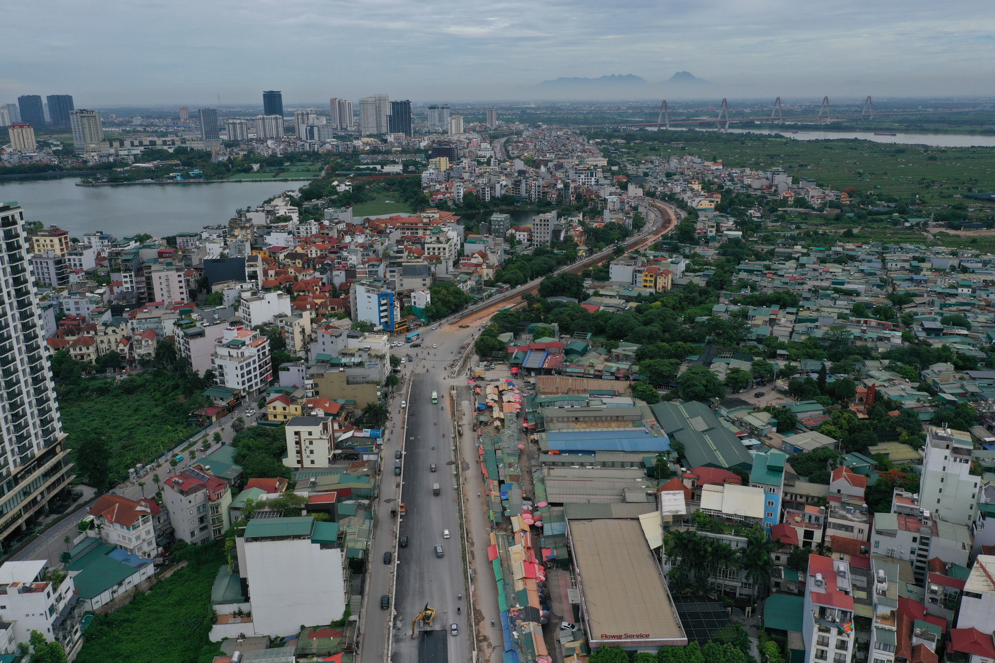 | Đoạn từ chợ hoa Quảng An đến cầu Nhật Tân dài khoảng 2,5km dự kiến sẽ hoàn thành, thông xe kỹ thuật trước 30/6. |