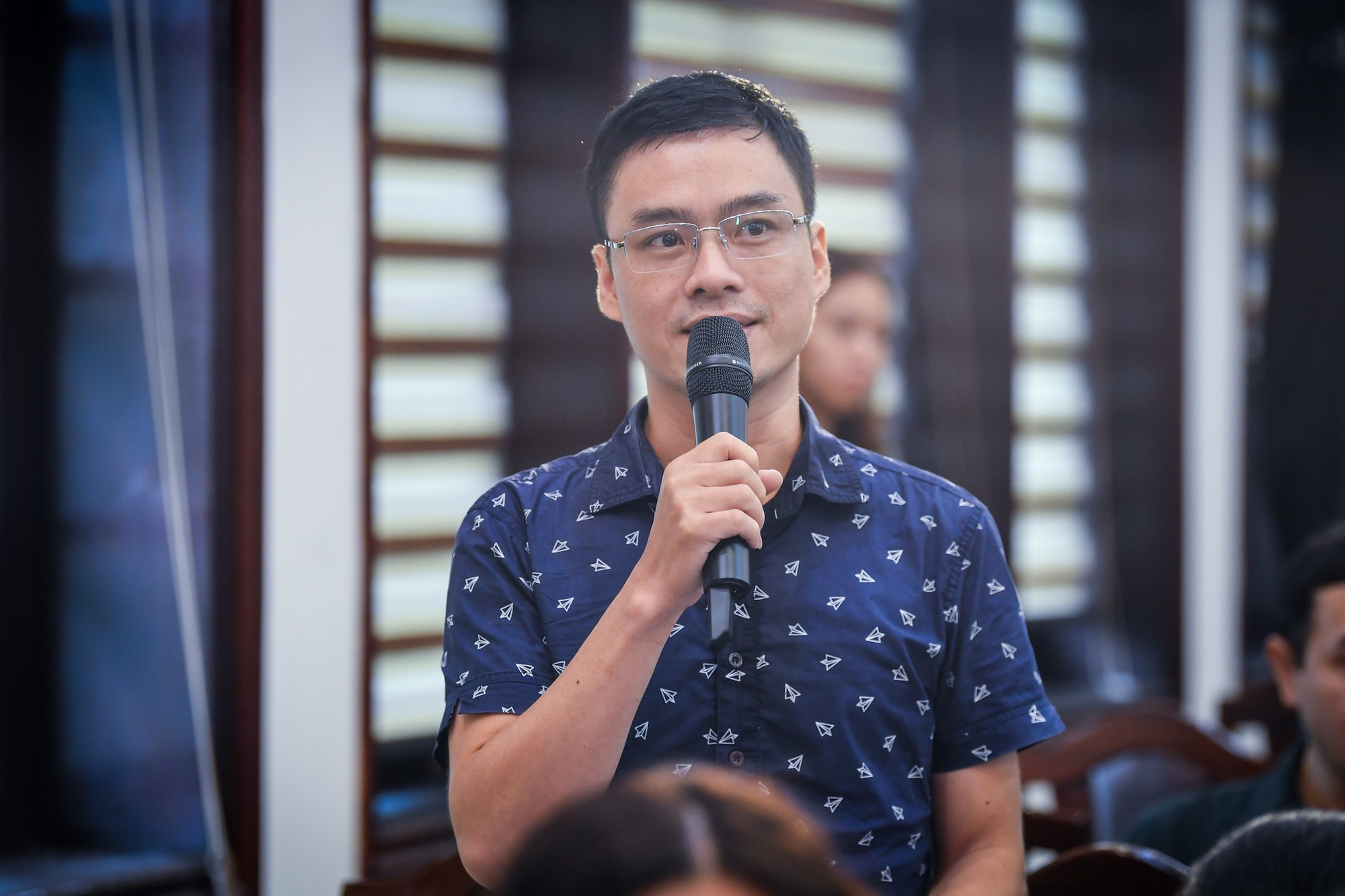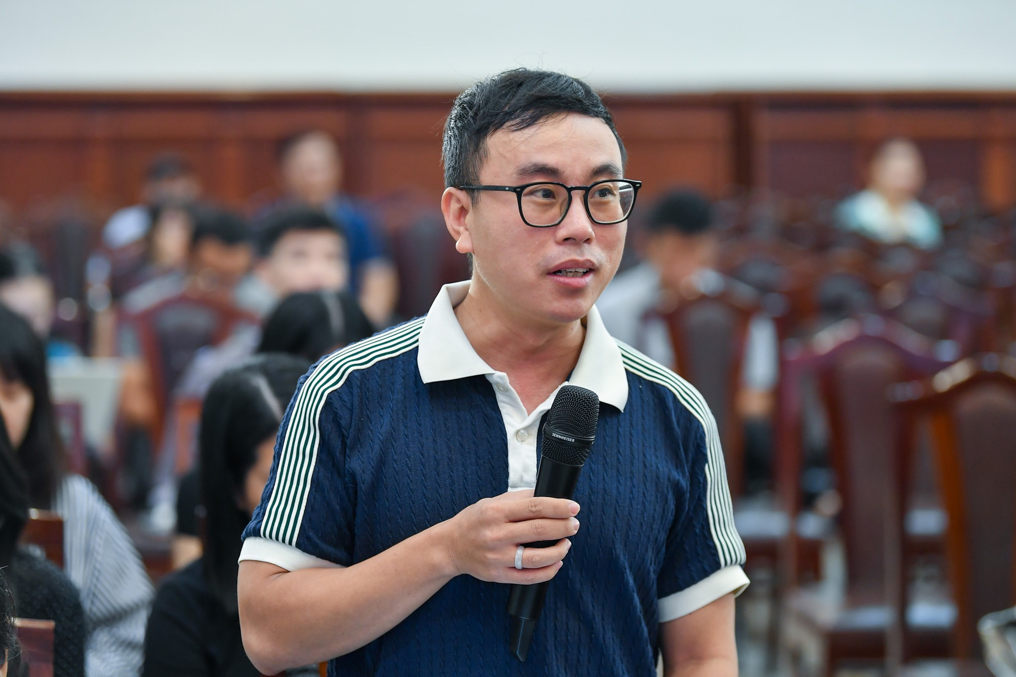 | Đạo diễn Phạm Hoàng Nam trả lời câu hỏi của các phóng viên tại sự kiện. |