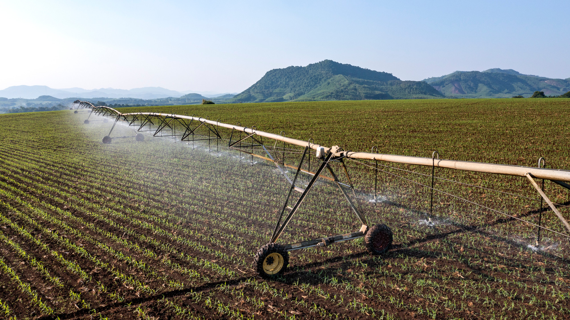 | Để chăm sóc cho diện tích hoa hướng dương, ngô, cao lương và cỏ, Trang trại TH đầu tư hệ thống tưới tự động “cánh tay khổng lồ” dài từ 500-700m, bảo đảm diện tích cỏ sinh trưởng tốt. |