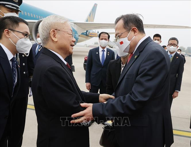 | Tổng Bí thư Nguyễn Phú Trọng đến sân bay quốc tế Bắc Kinh. (Ảnh: TTXVN) |