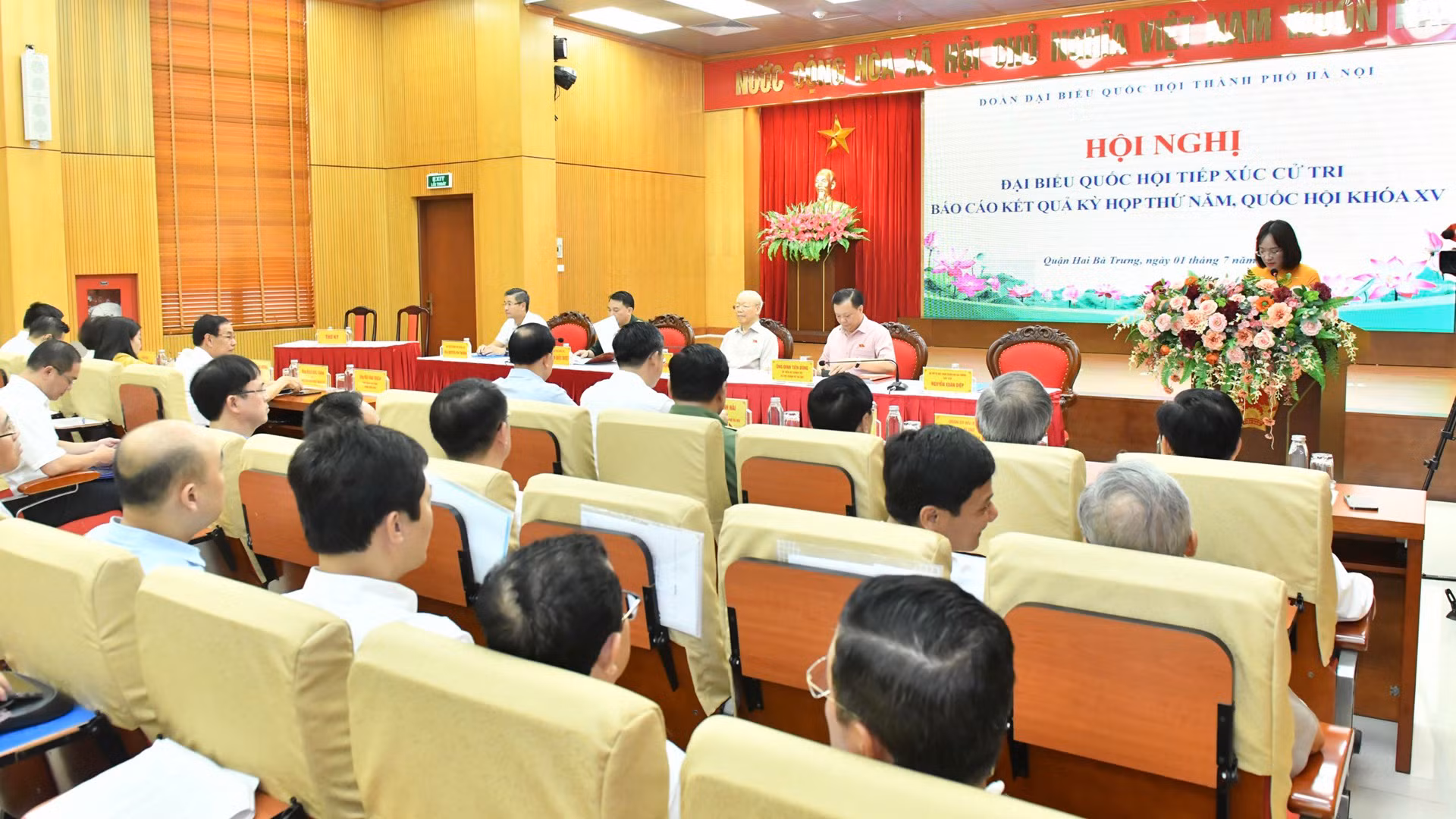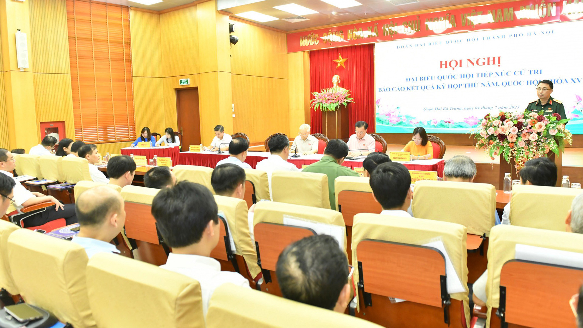 | Cử tri quận Hai Bà Trưng nêu kiến nghị với các đại biểu Quốc hội. |