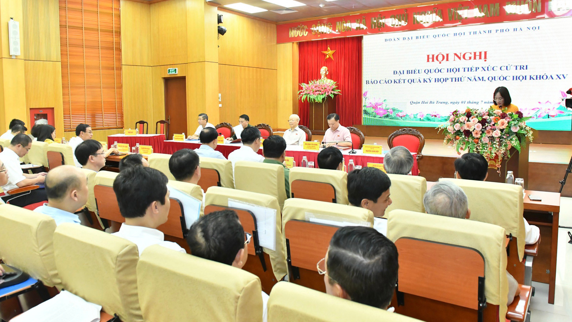 | Tổng Bí thư Nguyễn Phú Trọng dự hội nghị tiếp xúc cử tri thành phố Hà Nội sau Kỳ họp thứ 5, Quốc hội khóa XV. |