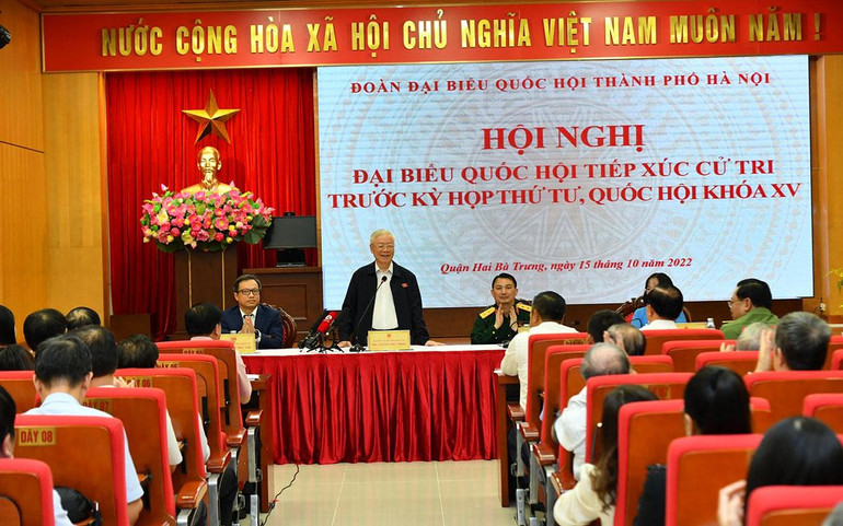 | Tổng Bí thư Nguyễn Phú Trọng với cử tri Thành phố Hà Nội. |