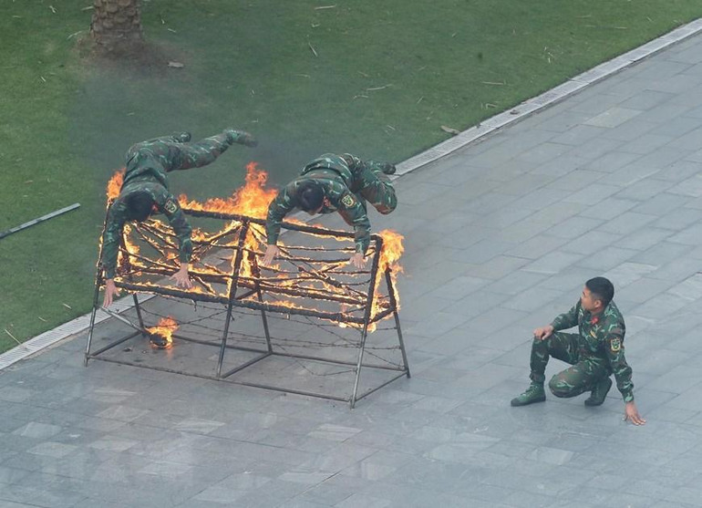 Biểu diễn võ thuật của bộ đội đặc công Việt Nam. (Ảnh: Trọng Đức/TTXVN)