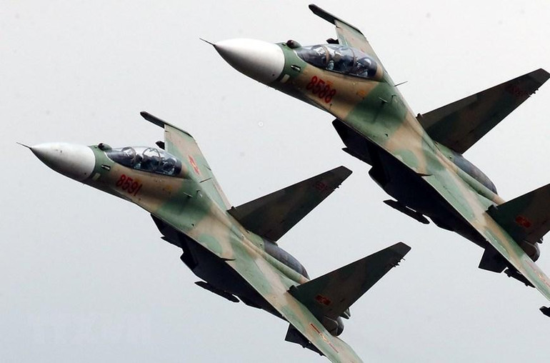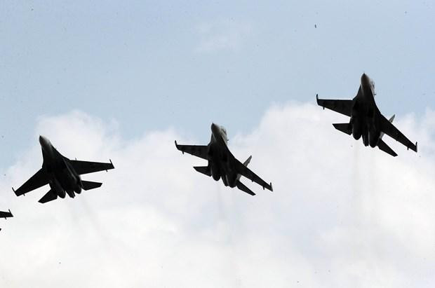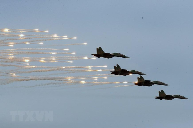 Phi đội máy bay Su30 MK luyện tập để phục vụ triển lãm. (Ảnh:Trọng Đức/TTXVN)