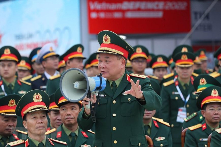 Thượng tướng Hoàng Xuân Chiến, Ủy viên Trung ương Đảng, Thứ trưởng Quốc phòng dự và chỉ đạo tổng duyệt. (Ảnh:Trọng Đức/TTXVN)