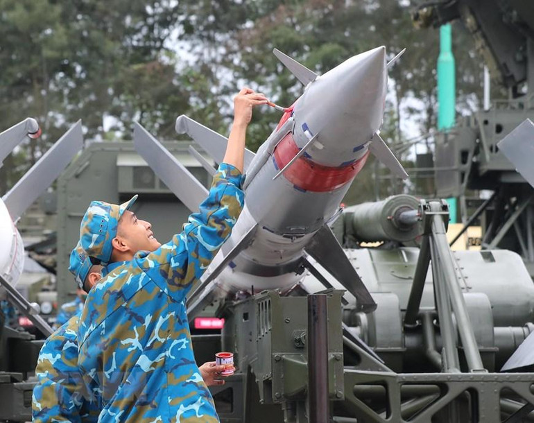 Các đơn vị tên lửa chuẩn bị vũ khí, khí tài trong ngày tổng duyệt. (Ảnh:Trọng Đức/TTXVN)
