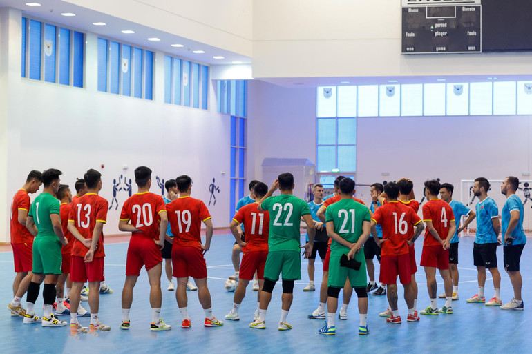 Sau những động tác giãn cơ, trò chơi thư giãn vui vẻ, huấn luyện viên Diego Giustozzi đã có những phân tích về đội tuyển futsal Nhật Bản. Nhà cầm quân người Argentina cho rằng đối thủ rất mạnh, nhưng đội tuyển futsal Việt Nam sẽ chơi theo cách của mình để giành tấm vé vào chơi tứ kết.