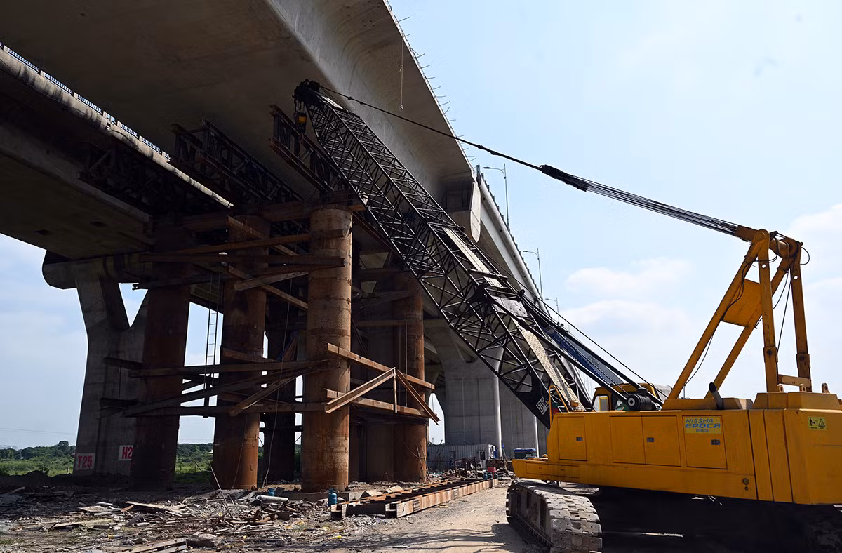 | Nhà thầu Vinaconex thi công các mối cầu trên công trường cầu Vĩnh Tuy 2. |