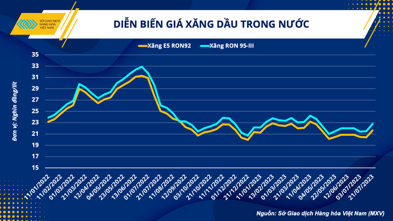 Tại Việt Nam, trong kỳ điều hành giá xăng dầu mới nhất vào ngày 21/7, Liên Bộ Công thương-Tài chính đã điều chỉnh tăng giá xăng E5RON92 và xăng RON95-III lên lần lượt là có mức 21.639 đồng/lít và 22.792 đồng/lít, tăng 1.295 đồng/lít. Các mặt hàng dầu khác như: dầu diesel, dầu hỏa và dầu mazut đồng loạt được điều chỉnh tăng.