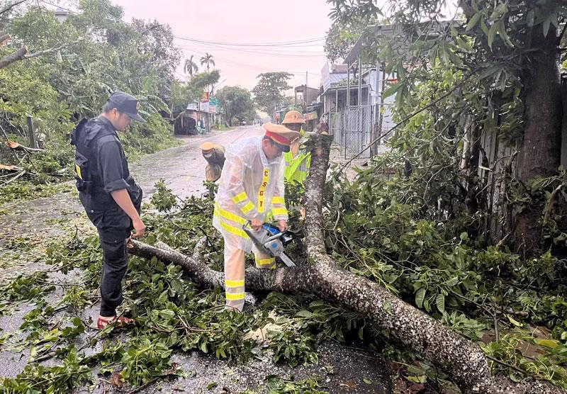 Thượng tá Hồ Văn Thư, Trưởng Phòng Cảnh sát giao thông Công an tỉnh Quảng Ngãi cho biết, đơn vị đã huy động 65 cán bộ chiến sĩ phối hợp lực lượng cơ động dùng cưa lốc dọn, giải tỏa cây xanh ngã đổ chắn ngang trên đường xuyên đêm. Đến 8 giờ 30 phút sáng 28/9, hàng loạt cây xanh ngã đổ trên tuyến đường QL24B và QL24C đã được thu dọn, giao thông thông suốt trở lại bình thường.