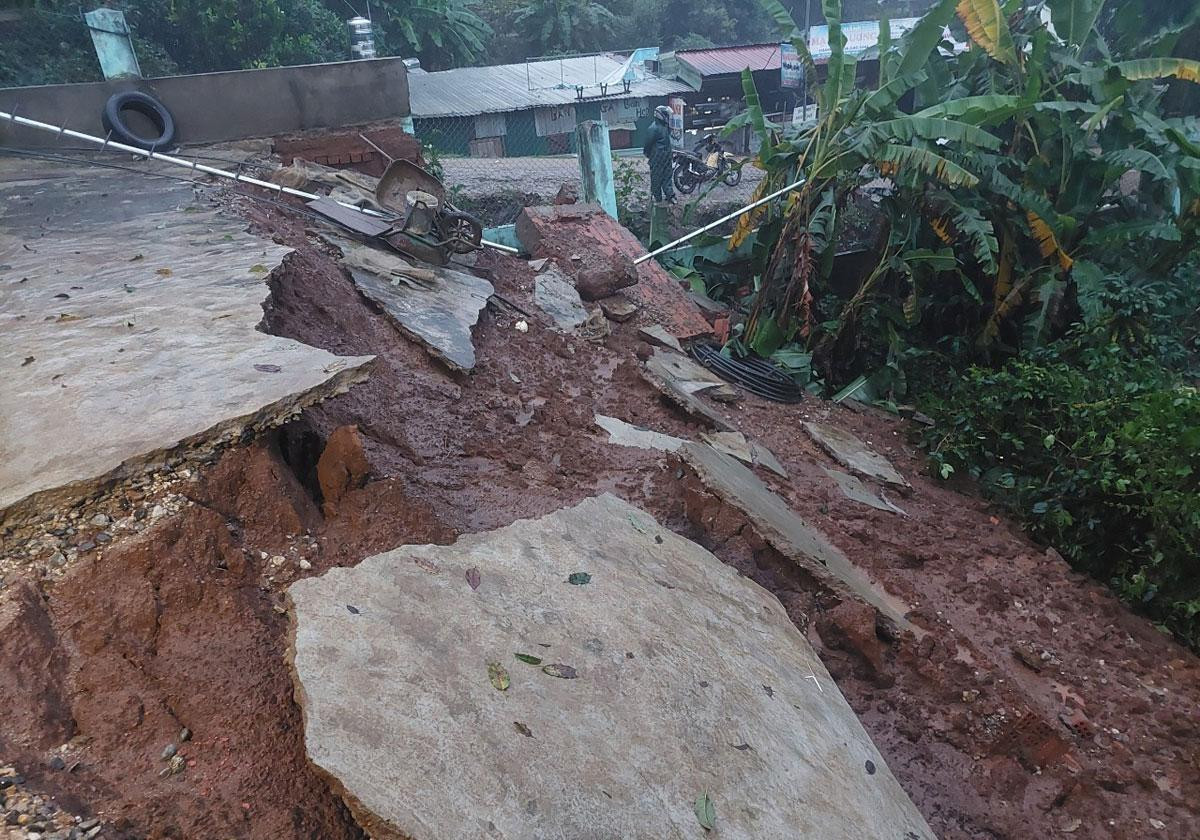 Sạt lở đất sát nhà anh A Ching, thôn Chung Tam, xã Măng Ri, huyện Tu Mơ Rông, tỉnh Kon Tum.