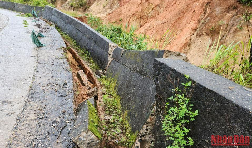 Do ảnh hưởng của bão số 4, tại tỉnh Kom Tum mưa lớn đã làm sạt lở ta luy dương gây ách tắc giao thông trên Km164+420 QL40B, Km45+50 TL672.