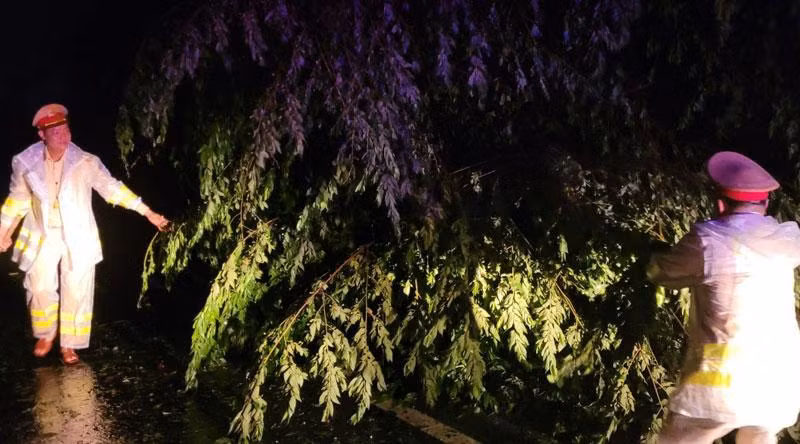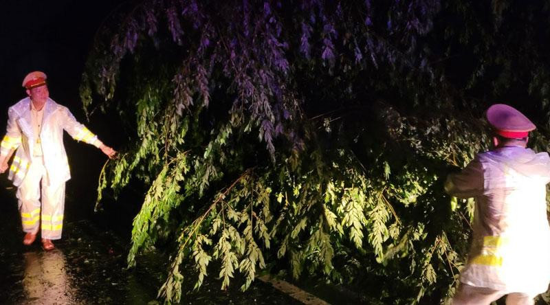 Cảnh sát giao thông toàn tỉnh, Công an các đơn vị địa phương đã huy động lực lượng, phương tiện phối hợp các đơn vị chức năng cưa cây đổ ngã; đồng thời tuần tra tuyên truyền, nhắc nhở người dân không đi vào tuyến đường nguy hiểm.