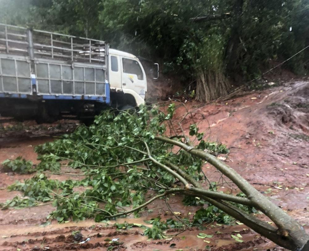 Ngoài ra, mưa lớn kèm theo gió mạnh cũng làm nhiều cây xanh đổ ngã và sạt lở đất trên nhiều tuyến đường.
