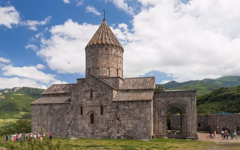 Trên vách đá cao 850 m, Tu viện Tatev được xây dựng từ thế kỷ thứ 9 là điểm đến không thể bỏ qua không chỉ vì tầm quan trọng của công trình này đối với tôn giáo và lịch sử mà còn vì cảnh quan thiên nhiên ngoạn mục chung quanh. Để tới Tu viện Tatev, du khách có thể sử dụng đường cáp treo nối dài từ Halidzor đến tu viện, và có thể sẽ rất bất ngờ khi chiêm ngưỡng cảnh quan từ trên cao. Tại Armenia thời trung cổ, Tu viện Tatev là nơi đặt trung tâm học thuật và tôn giáo quan trọng nhất đất nước. Ngày nay, khu phức hợp nổi tiếng và cổ kính này chắc chắn là một trong những điểm đến gây ấn tượng mạnh mẽ nhất của Armenia.