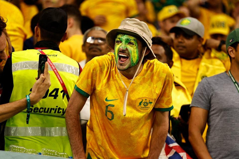 | Người hâm mộ Australia phấn khích trước chiến tích lịch sử của Socceroos. (Ảnh: Reuters) |