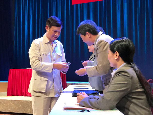 Nghệ sĩ Tiến Hợi trong vai Bác Hồ.
