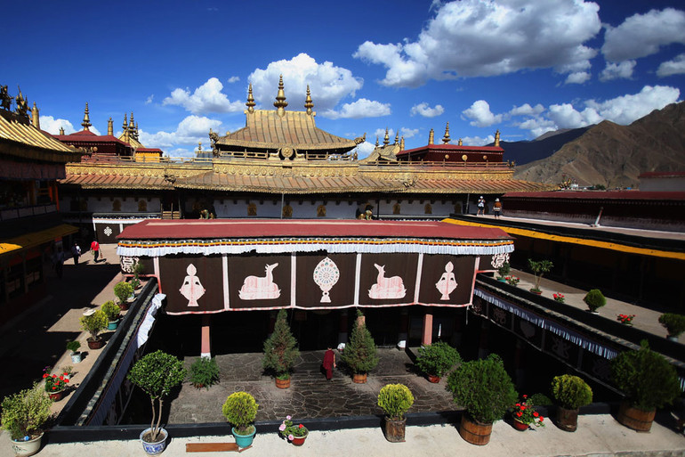 Cảnh vật thiên nhiên như rực rỡ, reo vui cùng sắc xanh ngắt của trời, sắc trắng xốp của mây, sắc vàng rực của nắng. Rồi sắc đỏ sậm huyền bí trên những tấm áo cà sa của các vị Lama, năm sắc màu Phật giáo trắng - đỏ - lục - vàng - lam trên những dây cờ Lungta phần phật uốn lượn theo chiều gió. Rồi đỏ son và cam đậm, đen thẫm và trắng tinh khôi, vàng vương giả và nâu khiêm nhường, tất cả được phối kết đầy ngẫu hứng, theo một tiết điệu nhịp nhàng nhưng vẫn đầy biến ảo trên những cung điện đền đài, những công trình tín ngưỡng và trong cả những ngôi nhà nhỏ yên bình nằm nép mình giữa con phố nhỏ. Ngắm thủ phủ Lhasa của khu tự trị Tây Tạng (Trung Quốc) bừng lên rực rỡ vào thời điểm cuối xuân đầu hè, tôi cứ nghĩ lẩn thẩn, bảng màu đa sắc nơi đây đủ sức làm xiêu lòng mọi nghệ sĩ tạo hình, dù khó tính nhất.