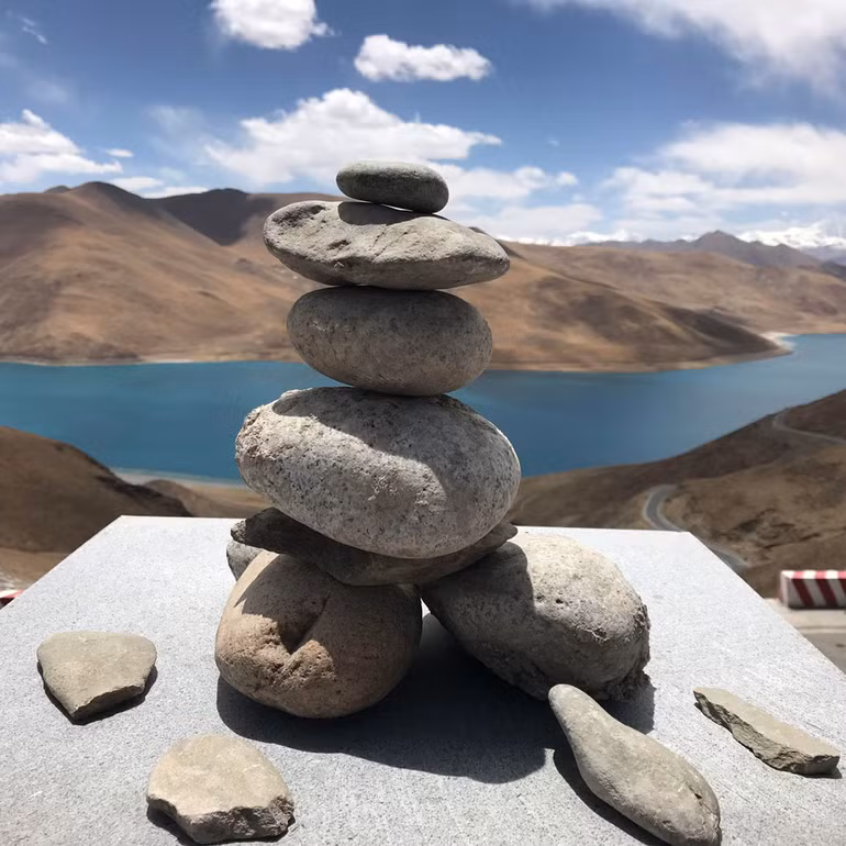Trên đỉnh đèo Kampala, ở độ cao 4998 mét, nơi có thể nhìn toàn cảnh hồ thiêng Yamdrok. Khá nhiều du khách chọn cách ôm bình oxy cố thủ trong ô-tô, bởi không khí loãng ở đây gây tức ngực và rất khó thở.