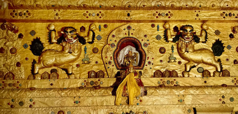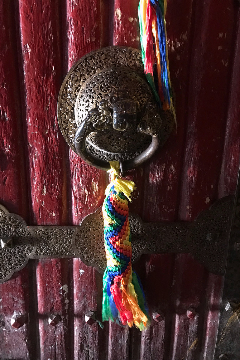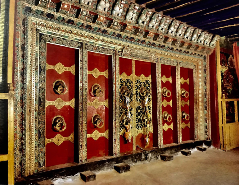 Motive trang trí trên cửa ra vào có thể gặp ở mọi công trình tín ngưỡng ở Tây Tạng.