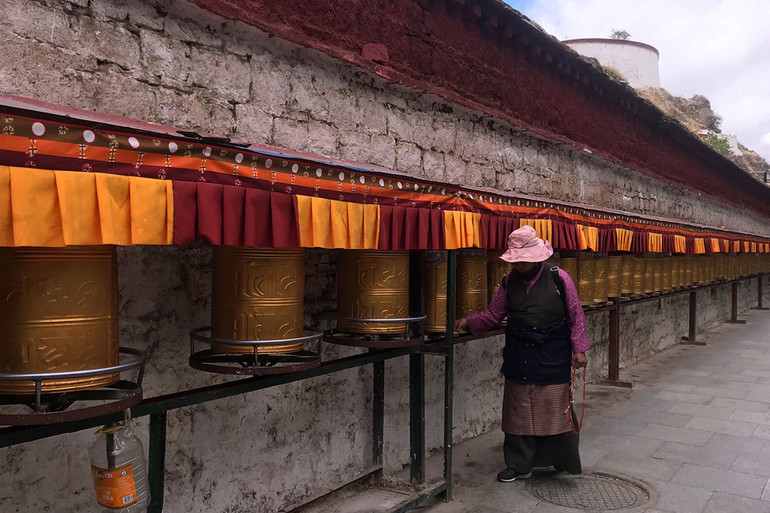 Tín đồ Phật giáo Tạng truyền đi kora quanh Cung điện Potala, vừa niệm chú vừa quay chuyển luân xa.