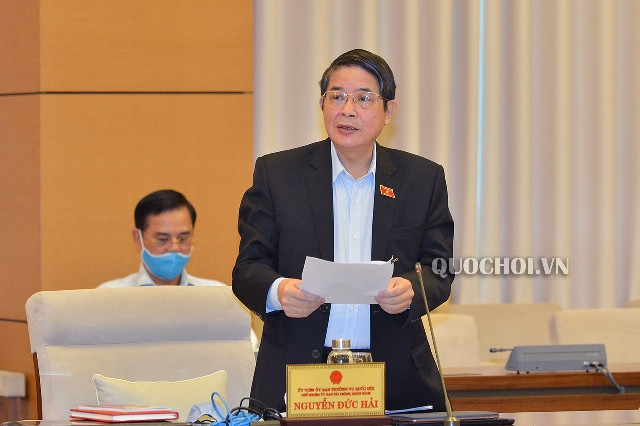 Chủ nhiệm Ủy ban Tài chính - Ngân sách Nguyễn Đức Hải trình bày Báo cáo thẩm tra.