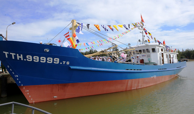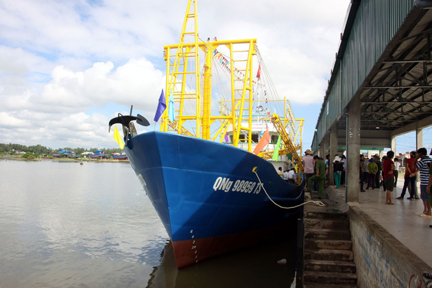 Theo đó, tàu vỏ thép trị giá 12 tỷ đồng mang số hiệu QNg 98959 TS được bàn giao cho ngư dân Huỳnh Thạch (44 tuổi) ở xã Phổ Quang, huyện Đức Phổ (Quảng Ngãi). Đây là ngư dân có tàu cá từng bị tàu nước ngoài đâm va gây thiệt hại nặng khi đang khai thác hải sản ngoài khơi.