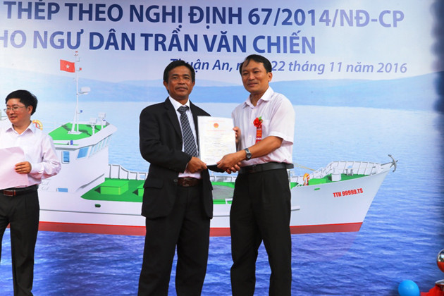 Bàn giao tàu cho ngư dân Trần Văn Chiến.