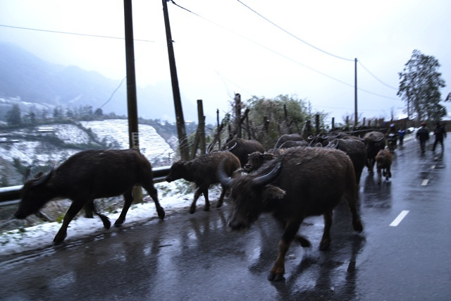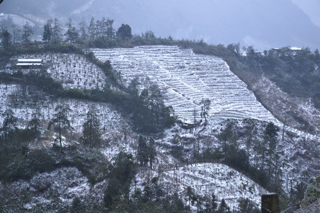 Hình ảnh băng tuyết rơi dày trên diện rộng ở Sa Pa, sáng ngày 24-1- 2016: