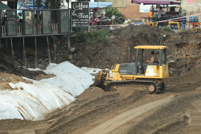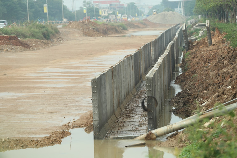Tuy nhiên, khó khăn trong việc chậm giải phóng mặt bằng ảnh hưởng khá lớn đến tiến độ thi công dự án: “Hiện gói thầu số 3, đoạn từ Km22+220 đến Km25+030, chúng tôi mới nhận được bàn giao khoảng 40% mặt bằng. Có những đoạn mặt bằng bàn giao theo kiểu "xôi đỗ" do vướng nhà dân, nên mỗi lần bàn giao đơn vị thi công chỉ nhận được 100-200m mặt bằng”, ông Kiên nói.