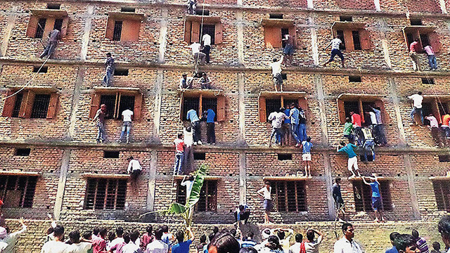 Cảnh “ném phao” cho thí sinh tại Ấn Độ. Ảnh: AP