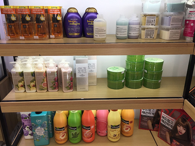 Các sản phẩm mỹ phẩm được bày bán tại cơ sở kinh doanh Skin House số 56 phố Trần Đại Nghĩa, Hai Bà Trưng, Hà Nội.